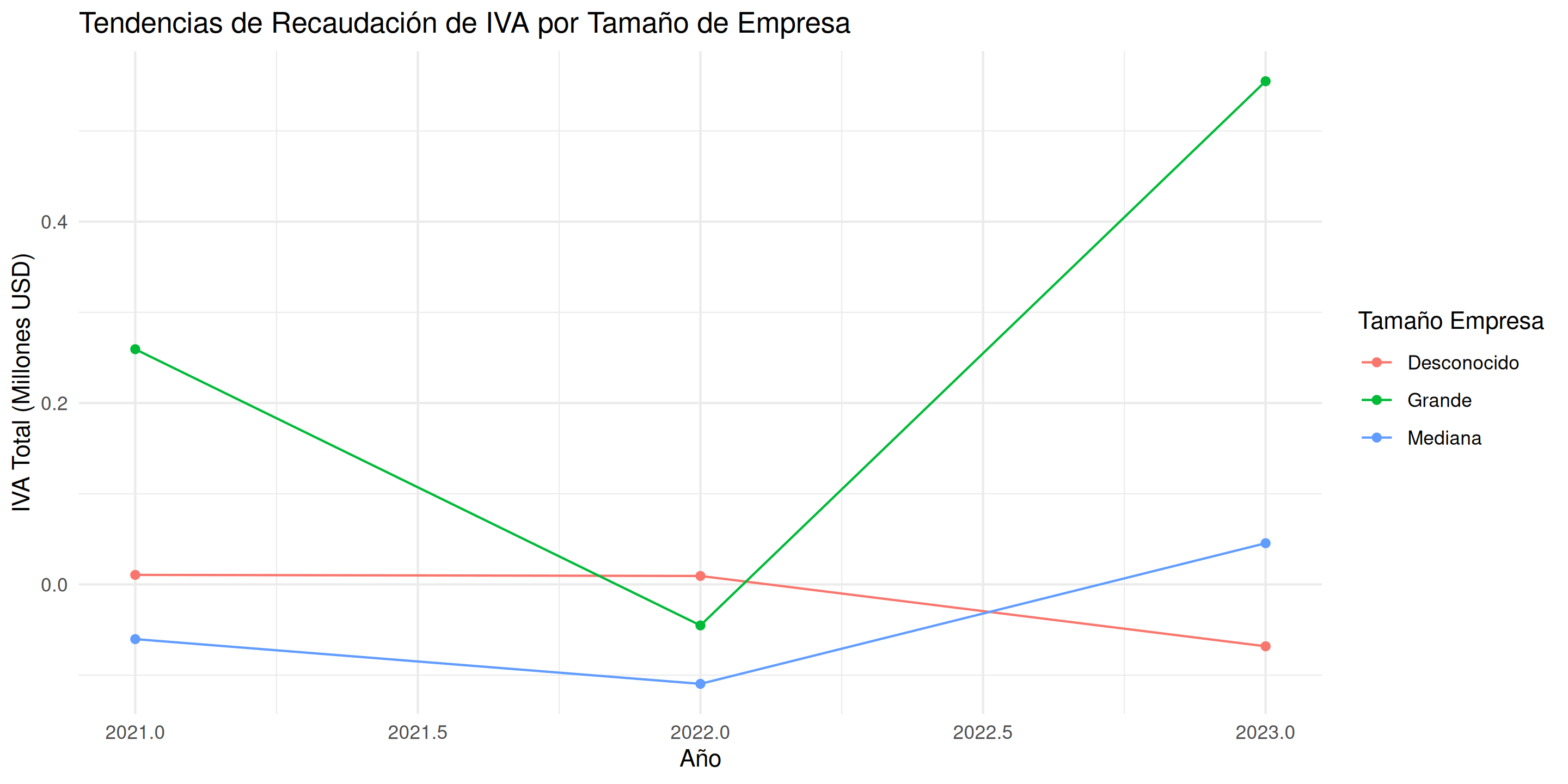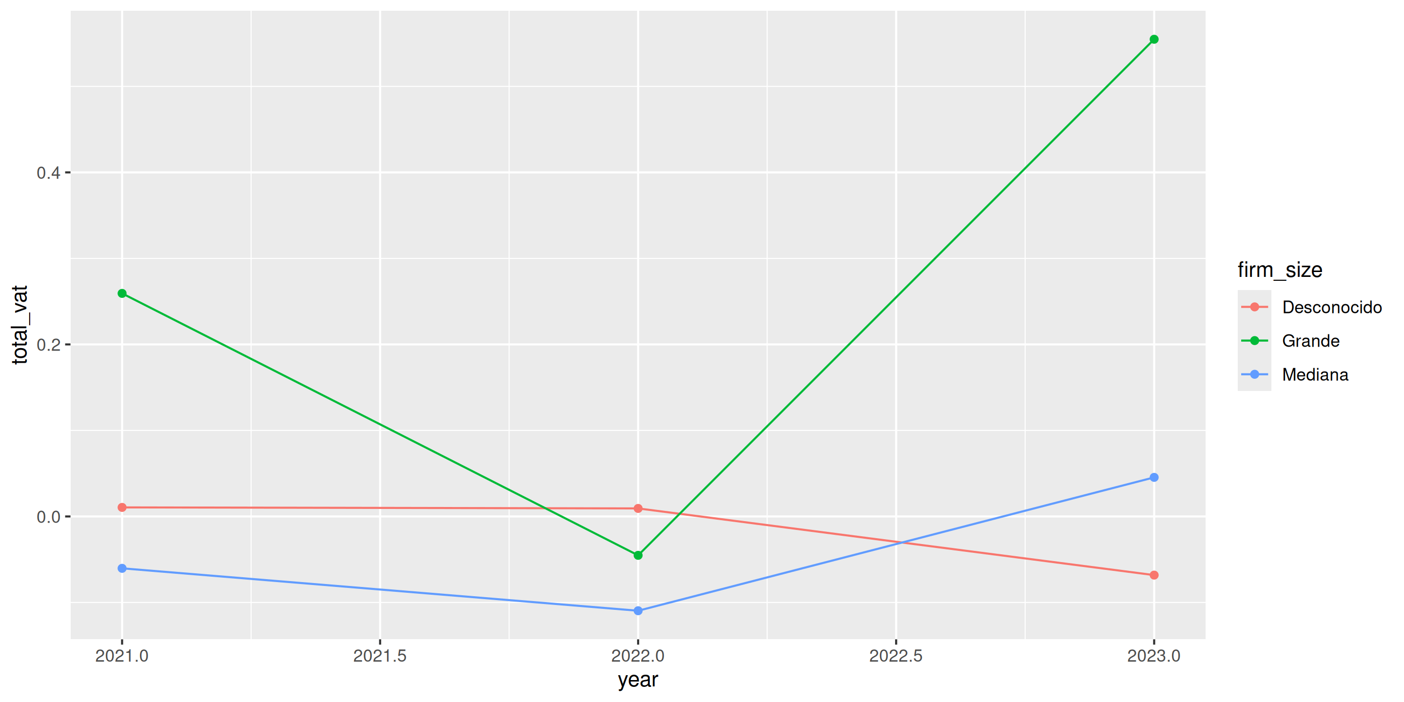 Ejemplo: IVA total con desglose por tamaño de empresa